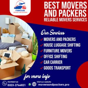 Are you planning a move in Islamabad, Rawalpindi, or nearby areas? Famous Movers and Packers in Karachi are here to make your relocation smooth, affordable, and stress-free. Whether you’re shifting your home, office, or just a few pieces of furniture, we provide professional moving services tailored to your needs.